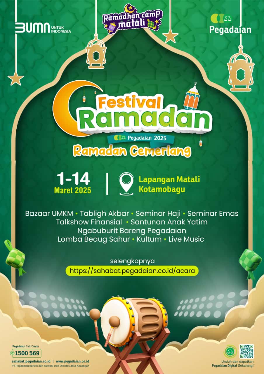 Kontras.co.id – Kota Kotamobagu akan semakin semarak dengan hadirnya Festival Ramadan Pegadaian: Ramadan Cemerlang 2025. Acara tahunan ini kembali digelar pada 1 hingga 14 Maret 2025 di Lapangan Matali, Kotamobagu, membawa berbagai kegiatan inspiratif yang menggabungkan nuansa religius, edukasi finansial, dan hiburan Islami bagi masyarakat.