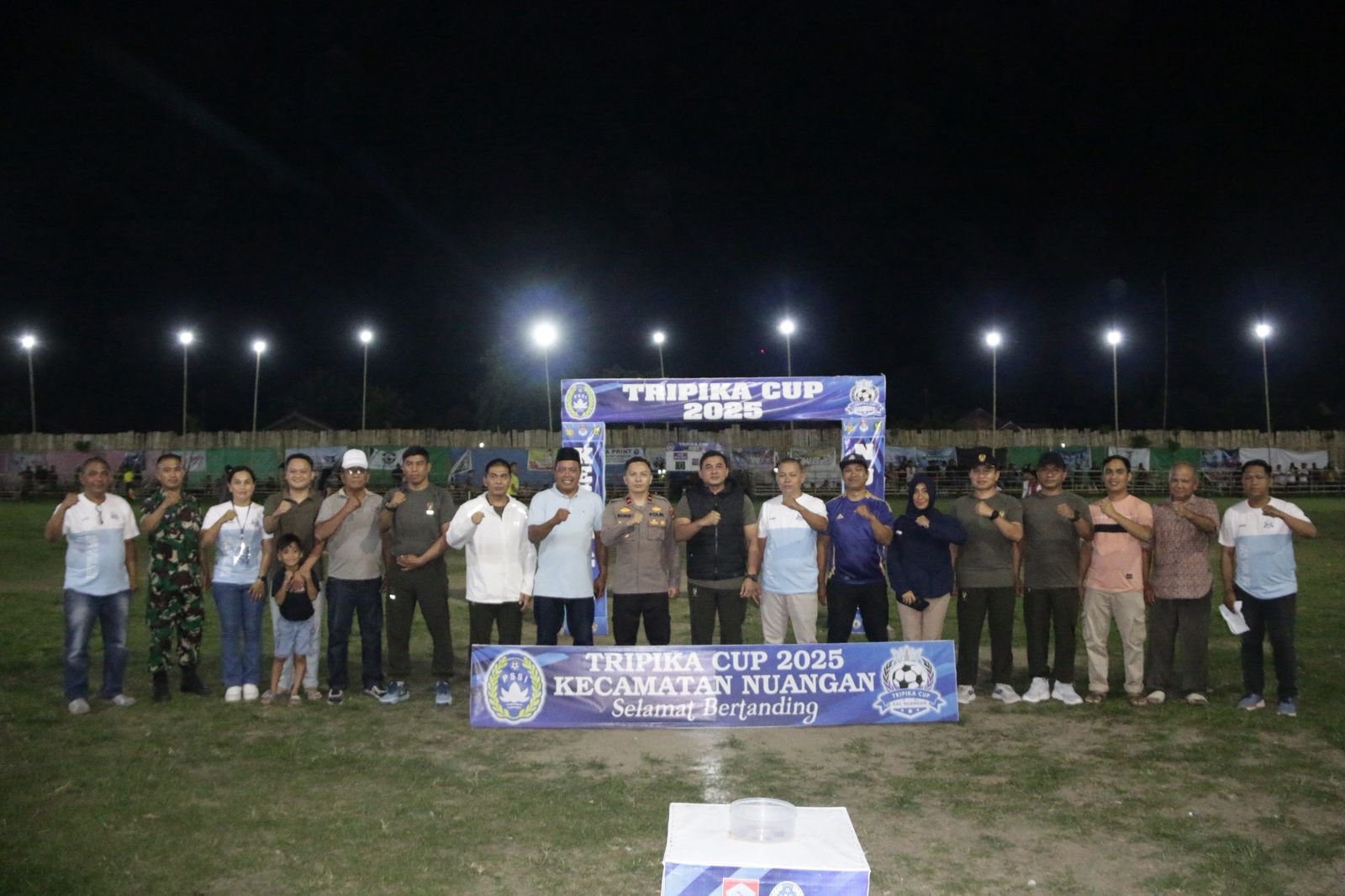 Kegiatan yang dimulai pukul 20.00 WITA ini dihadiri sejumlah pejabat dan unsur Forkopimda. Hadir langsung Dandim 1303/BM Letkol Inf Fahmil Harris, S.I.P., Kasdim 1303/BM Mayor Arh Achmad Janis, Pasi Intel Kodim 1303/BM Kapten Inf Muyassir, Pasi Teritorial Kapten Czi Sardi Oni Mamonto, Pasi Log Letda Inf Muslimin, serta Danramil 05/KTBN Peltu Junil Tehalu. Turut hadir pula Kapolsek Nuangan Ipda Rommy Fransiskus Pangalila, Camat Nuangan Mursid Mamonto, perwakilan PSSI Boltim, Ketua Panitia Tripika Cup Ny. Maslinda Solag, serta jajaran pemerintah desa setempat.